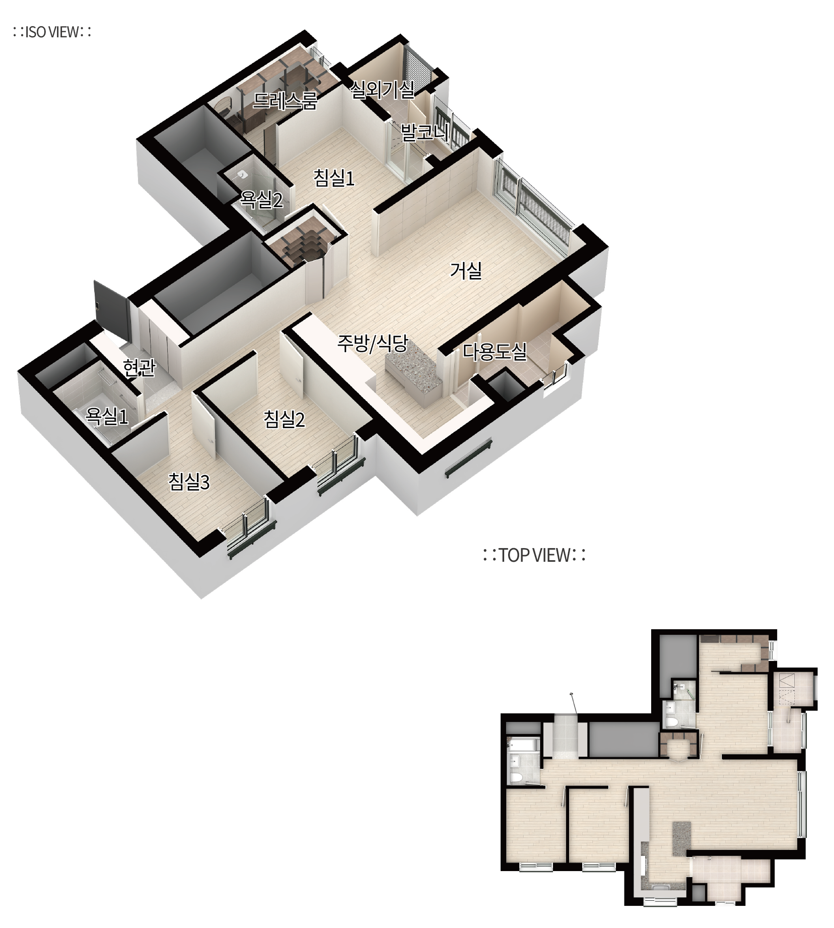 ※ 상기 아이소 및 평면도는 소비자의 이해를 돕기 위해 제작된 것으로 마감재의 색상, 패턴 등은 본공사시 차이가 있을 수 있습니다.