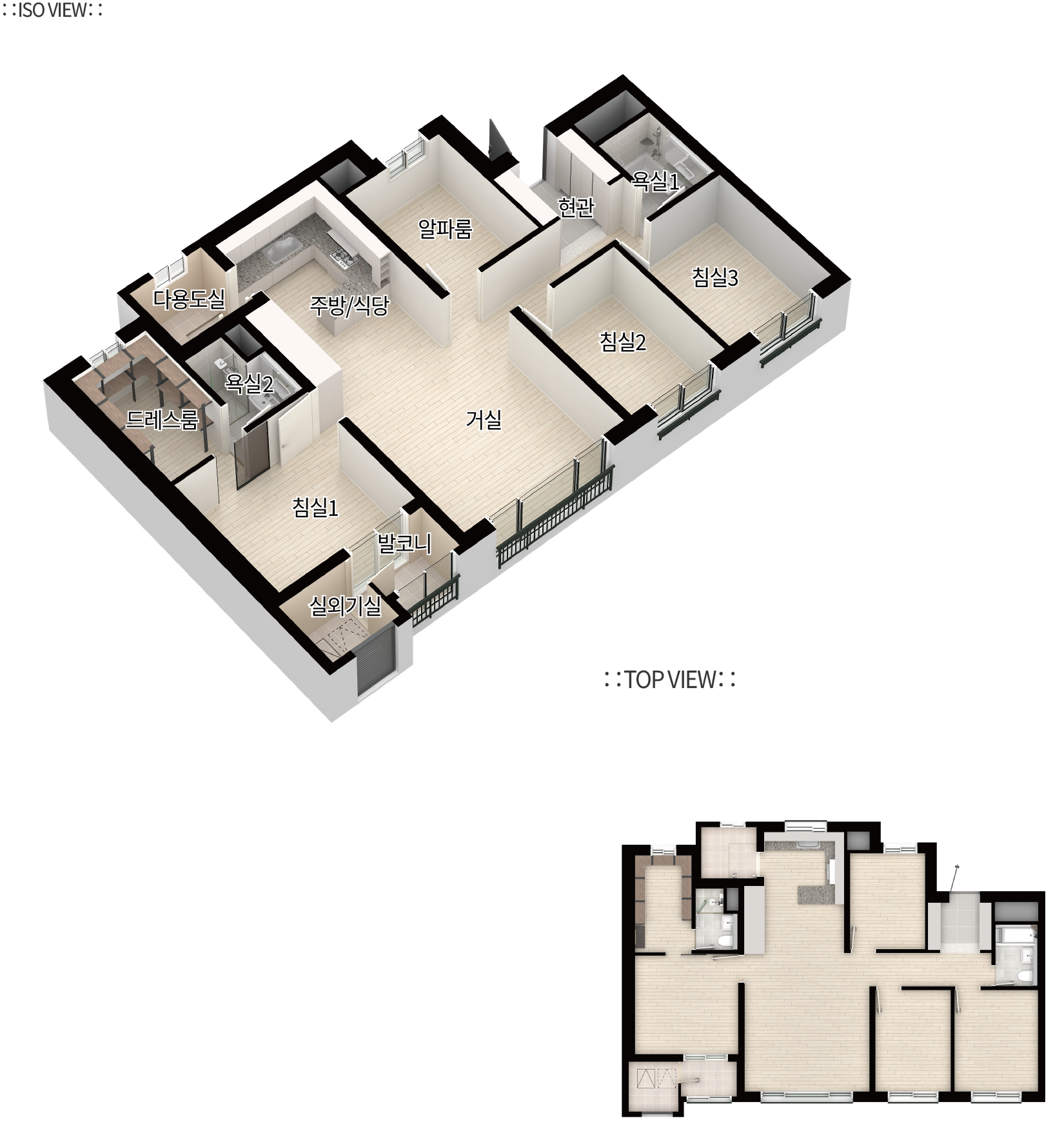 ※ 상기 아이소 및 평면도는 소비자의 이해를 돕기 위해 제작된 것으로 마감재의 색상, 패턴 등은 본공사시 차이가 있을 수 있습니다.